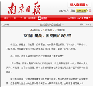 更多保供应、保稳定、保发展。疫情面前,南京国资国企系统,不计成本、不讲条件、不留死角,为打赢疫情防控阻击战作出了自己的贡献,彰显了忠诚与担当。 不计成本,冬夜急调棉大衣给武汉旅客传递“南京温度” 1月26日晚,两架从曼...