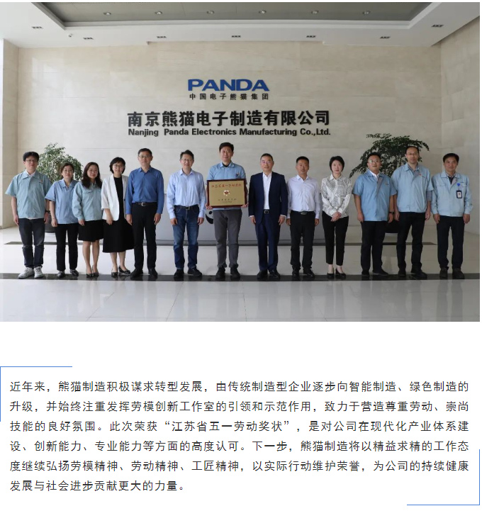 江苏省机冶石化工会为熊猫制造授牌“江苏省五一劳动奖状”
