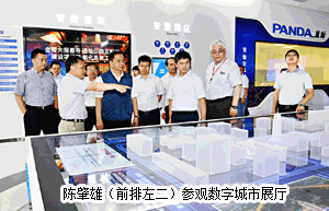 陈肇雄一行先后参观了熊猫机器人展示中心、数字化工厂和数字城市展厅,深入了解熊猫智能制造、智慧城市产业发展情况,对“熊猫”坚持创新发展理念,推动产业转型升级方面取得的成绩表示肯定,希望“熊猫”把握好新一轮科技革命和产业变革的历史机遇,做强做大核心主业,为国家电子信息产业发展作出更大的贡献。