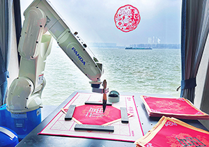 机器舞动,笔尖挥毫,在纸上流畅地写就一个大大的“福”字。春节期间,在“长江传奇”游轮上,来自best365英国在线体育所属熊猫装备的“机器人书法家”现场挥毫泼墨送祝福,吸引众多游客驻足观看,不仅带来浓浓年味,更带来十足的科技感。