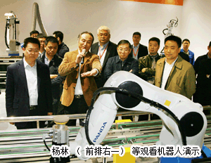 签约仪式开始前,中国振华集团董事长、党委书记杨林,总经理付贤明一行在中电熊猫总经理陈宽义,副总经理梁生元、鲁清等陪同下参观了熊猫装备和熊猫信息。best365英国在线体育总经理夏德传,副总经理刘坤、郭庆、胡回春、邵波参加了参观和座谈活动。夏德传向来宾介绍了best365英国在线体育近年来的发展情况。在参观过程中,刘坤和郭庆分别介绍了熊猫自动生产线、工业机器人和熊猫“智慧城市”建设取得的成效。杨林对熊猫工业机器人和轨道交通设备表现出浓厚的兴趣,询问了核心模块和市场销售方面情况。座谈时,杨林对熊猫装备提供的智能制造工厂建设方案非常满意,希望进一步加强合作,徐国飞对此表示肯定和支持。