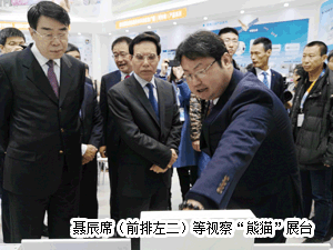 展会开幕后,国家广电总局局长聂辰席,副局长田进、吴尚之等领导到“熊猫”展区参观指导,听取了熊猫广电事业部总经理葛志群关于“熊猫”广电领域的发展战略及创新系列产品的汇报。聂辰席对“熊猫”广电取得的成绩表示肯定,他指出,“熊猫”是具有悠久历史的国企,要跟上时代步伐,抢抓机遇重振雄风,让“熊猫”产品走进千家万户。