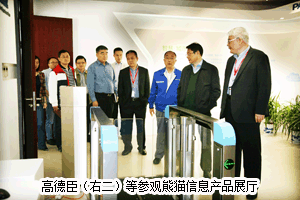 5月9日上午,南京经济技术开发区主任高德臣一行,在中国电子总经理助理,中电熊猫党委书记、董事长,熊猫电子总经理徐国飞等陪同下到熊猫装备园调研,受到夏德传、董志明、沈见龙等公司领导热情接待。