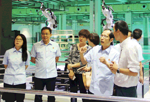 6月6日下午,市中级人民法院民事执行局副局长刘红兵一行到熊猫装备园开展“送法进企业”活动,受到熊猫电子总经理助理、总法律顾问姜红等热情接待。双方在座谈时就企业经营管理中的法律问题进行了交流。刘红兵一行还参观了熊猫装备机器人演示区、轨道交通装备生产区和熊猫信息产品陈列室。(吴凯摄 王一媛文)