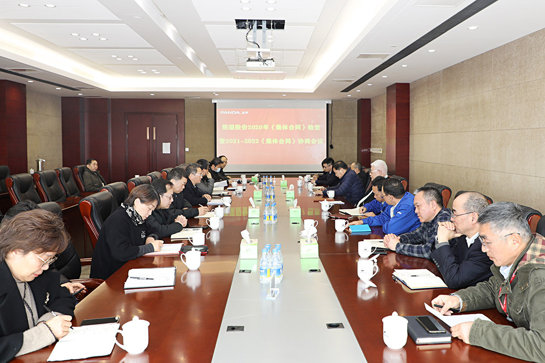 On January 28, Panda Electronics held the 2020 collective contract inspection and 2021-2022 collective contract negotiation meeting. The general manager and Deputy Secretary of the Party committee of Panda Electronics Mr. Xia Dechuan led the representatives of the operator, and the deputy secretary of the Party committee, Secretary of the Discipline Inspection Commission and chairman of the trade union Mr. Yi Guofu led the representatives of the staff side to inspect the performance of the collective contract in 2020 and negotiate the collective contract in 2021 on an equal basis.